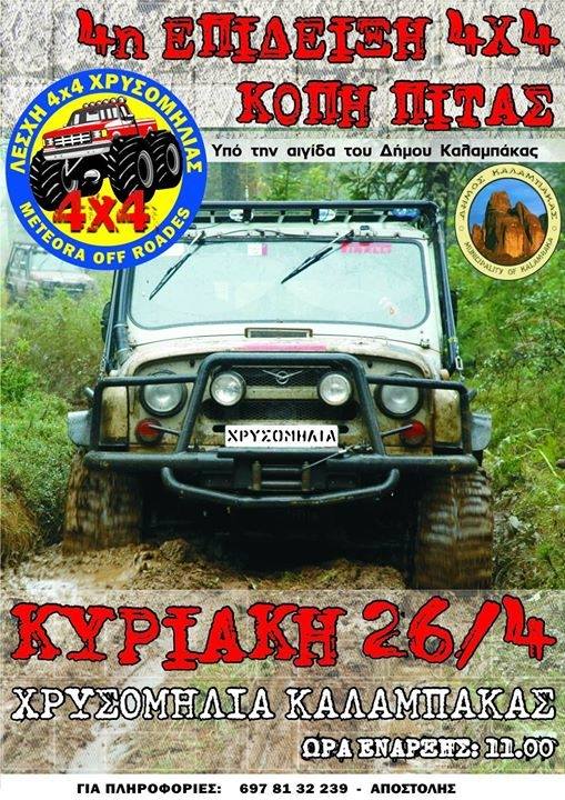 Κυριακή 26 Απριλίου στις 11 το πρωί κοπή πίτας και η 4η Επίδειξη 4×4.