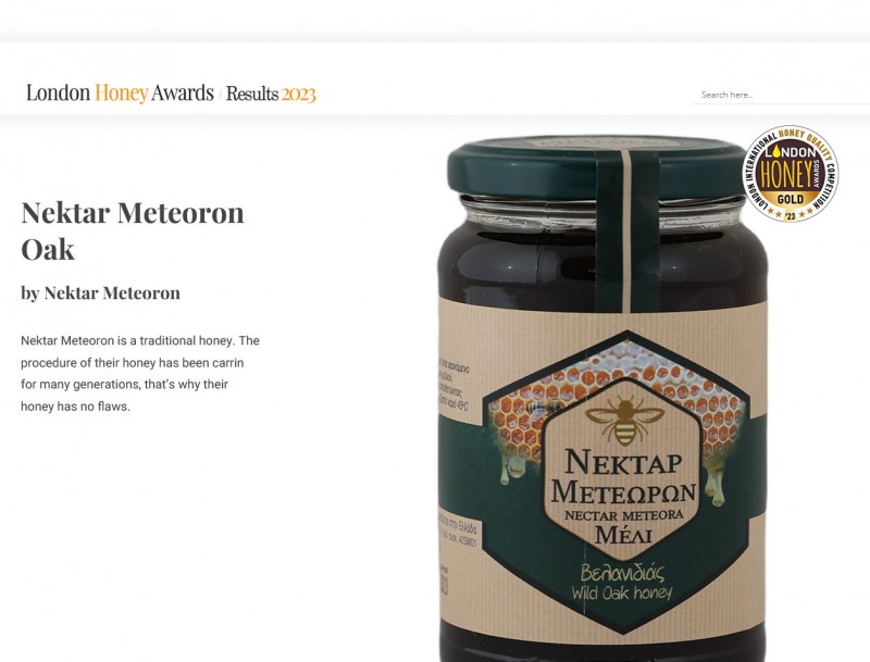 Στα καλύτερα μέλια του κόσμου με την υψηλότερη βαθμολογία συμπεριλαμβάνονται για ακόμη μια χρονιά για την ποιοτητά τους , τα μέλια΄΄Κωνοφόρων & Ανθέων’’ ΚΑΙ ΄΄Βελανιδιάς’’ του παραγωγού ΑΝΤΩΝΙΟΥ ΑΝΔΡΕΑ. Ανάμεσα σε εκατοντάδες διεθνής συμμετοχές επισφραγίστηκε η ανώτερη ποιότητα των μελιών ‘’Νέκταρ Μετεώρων’’ με 2(δύο) ΧΡΥΣΑ ΒΡΑΒΕΙΑ.