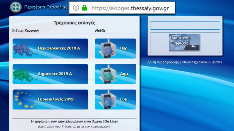 Μετάδοση εκλογικών αποτελεσμάτων Θεσσαλίας 26ης Μαΐου 2019