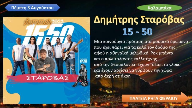 Ανακοινώθηκε από τον δήμο Μετεώρων το πρόγραμμα των εκδηλώσεων του καλοκαιριού 2023 “ΜΕΤΕΩΡΑ ΤΕΧΝΗΣ 2023”.
