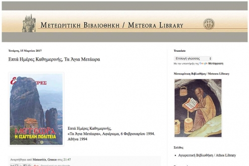 ΜΕΤΕΩΡΙΤΙΚΗ ΒΙΒΛΙΟΘΗΚΗ / METEORA LIBRARY – Νέα ψηφιακή βιβλιοθήκη για τη μοναστική πολιτεία των Μετεώρων στο διαδίκτυο