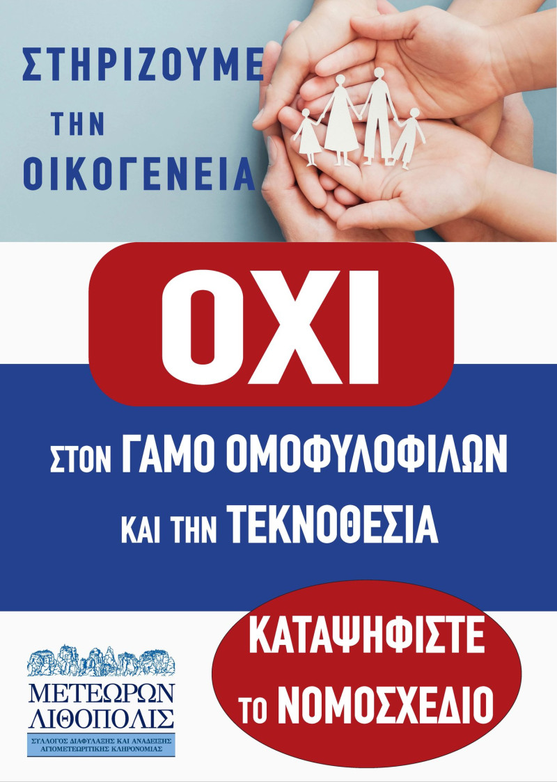 Μετεώρων Λιθόπολις: Όχι από τα Ορθόδοξα Ελληνικά Σωματεία Ν. Τρικάλων στον γάμο Ομοφυλόφιλων και την Τεκνοθεσία