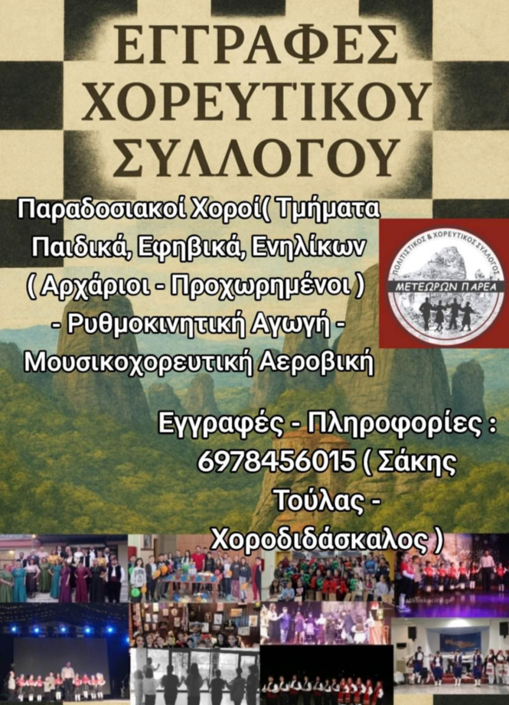 Εγγραφές – Πληροφορίες : 6978456015 ( Σάκης Τούλας – Χοροδιδάσκαλος )