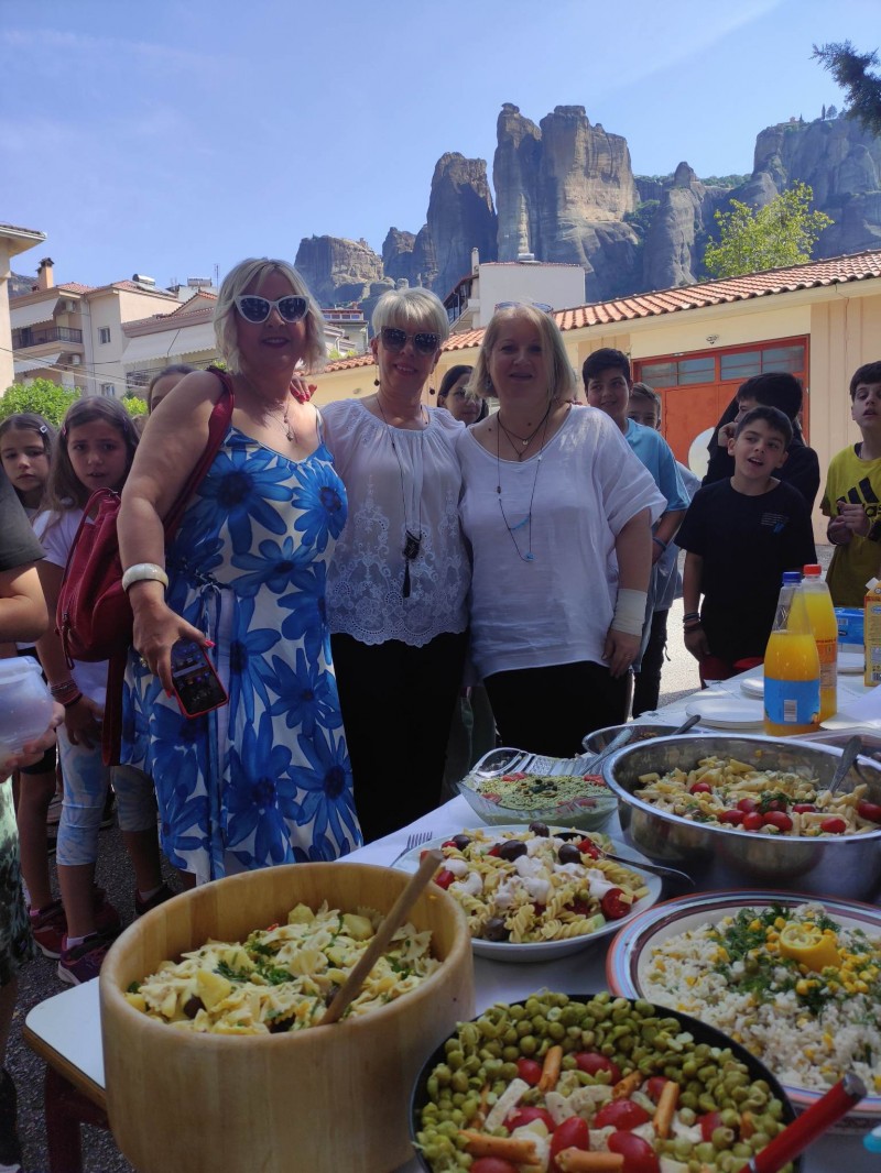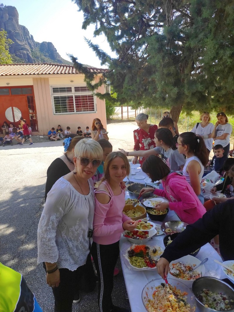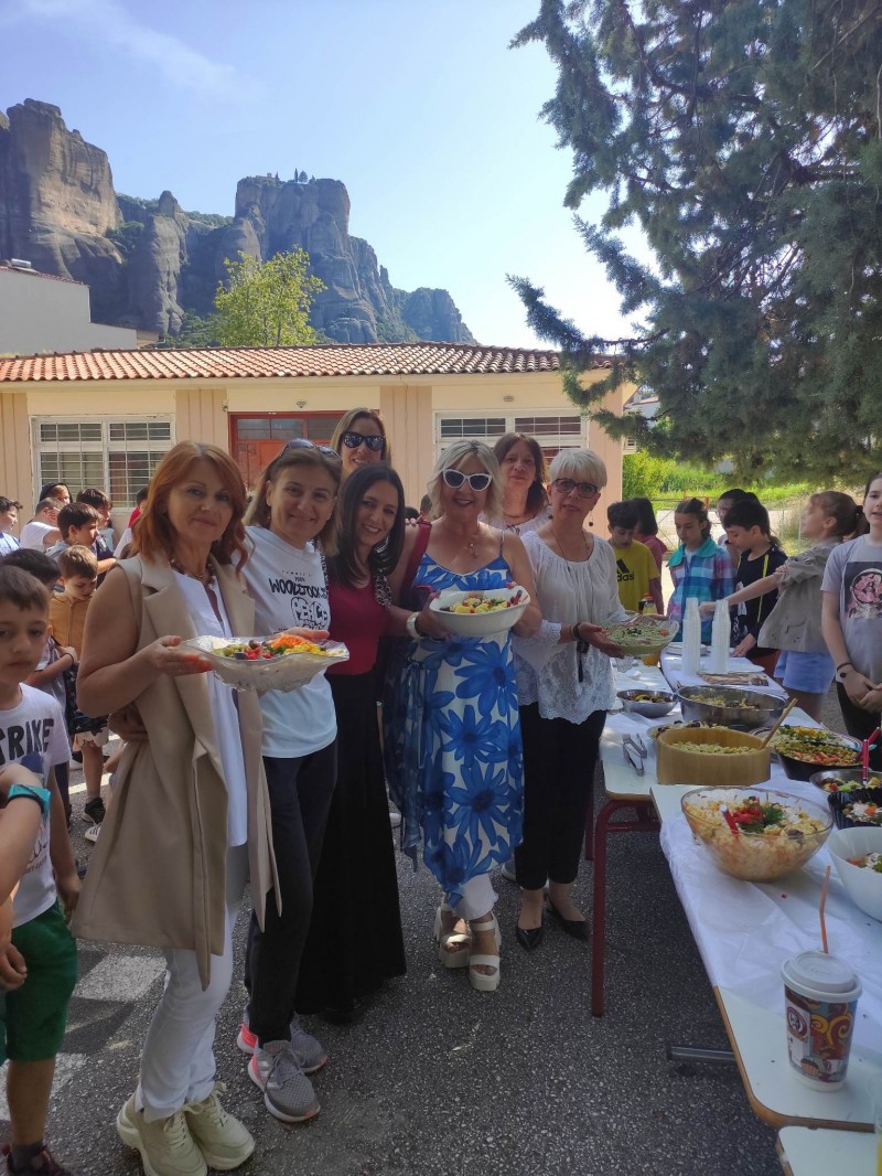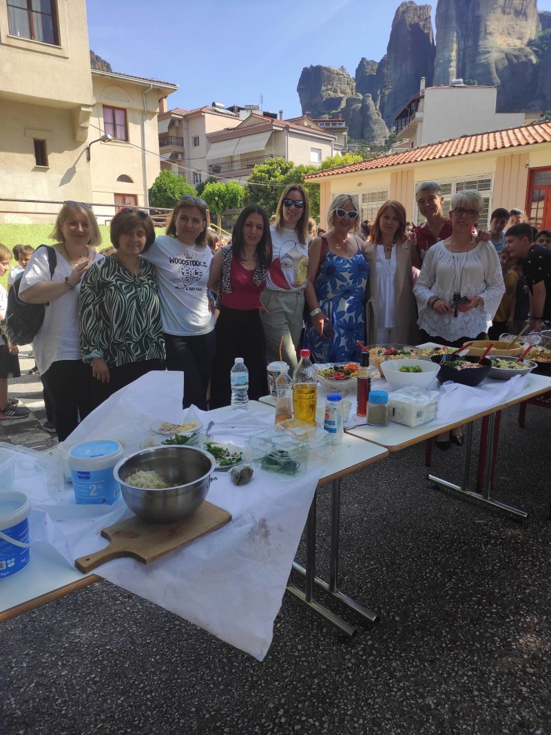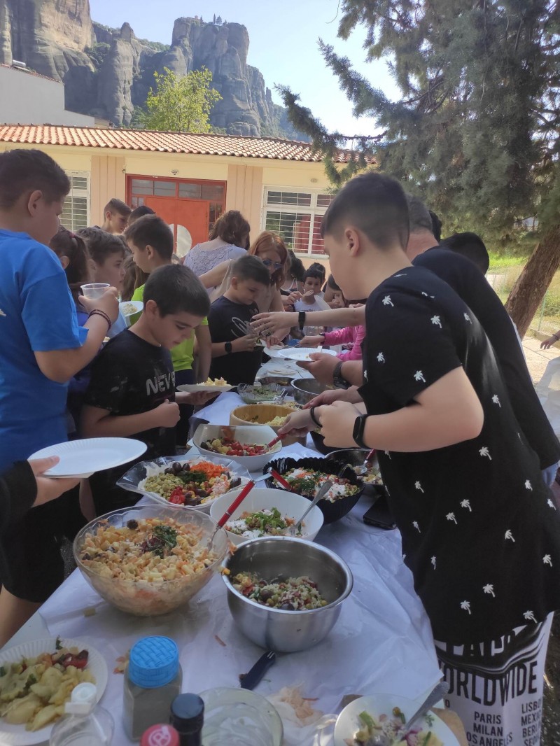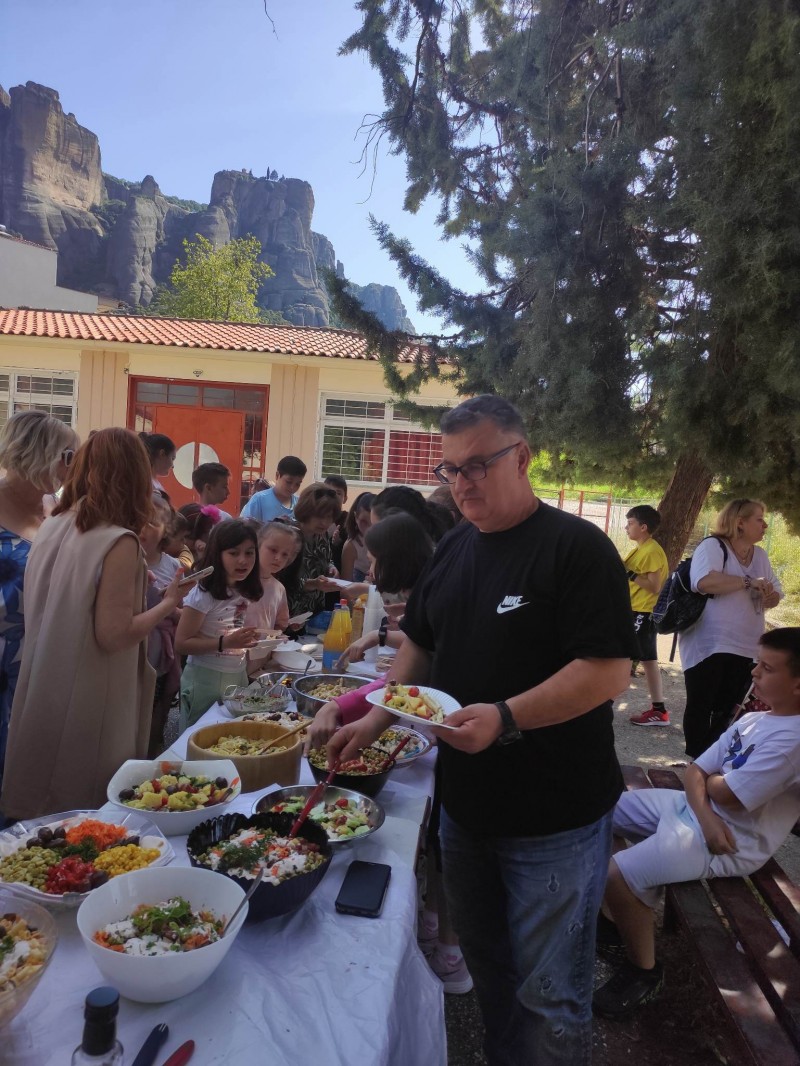 Μια υπαίθρια κουζίνα με θέα τους επιβλητικούς βράχους των Μετεώρων στήθηκε στον αύλειο χώρο του σχολείου μας. Το καλοκαιράκι ήδη ξεπρόβαλε και μαζί μ’ αυτό υπέροχες, πολύχρωμες σαλάτες λαχανικών που ετοιμάστηκαν από εκπαιδευτικούς και μαθητές μας χάρισαν μία νότα δροσιάς και ικανοποίησης για το δικό μας ξεχωριστό γευστικό δημιούργημα.