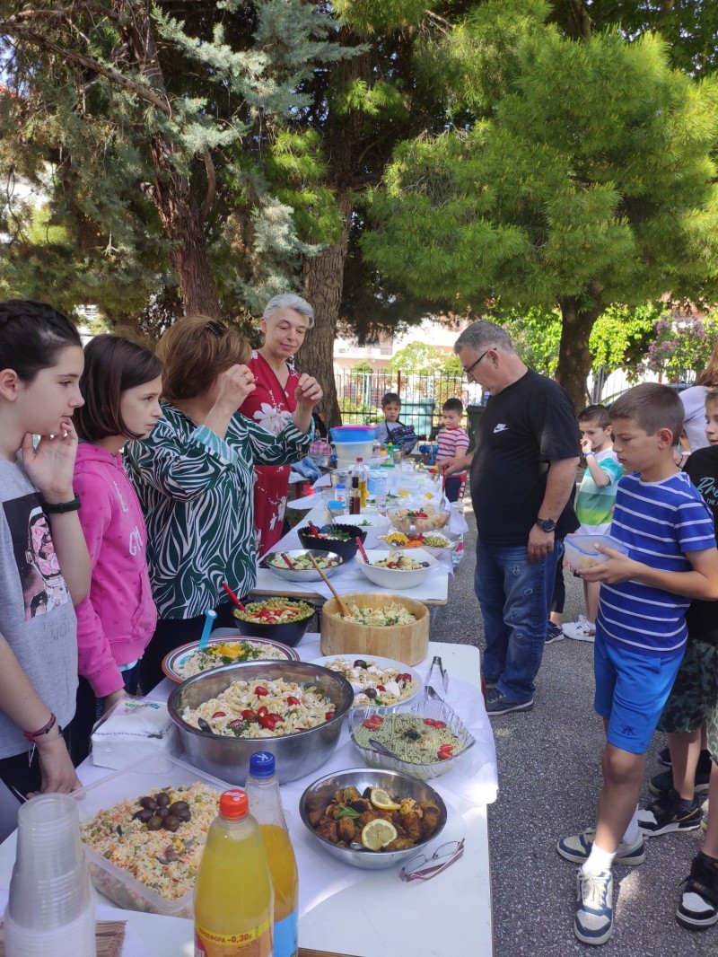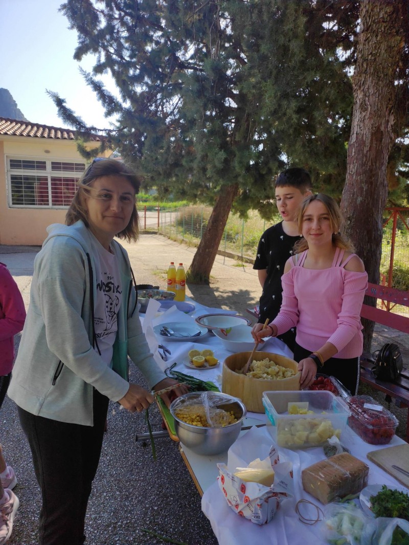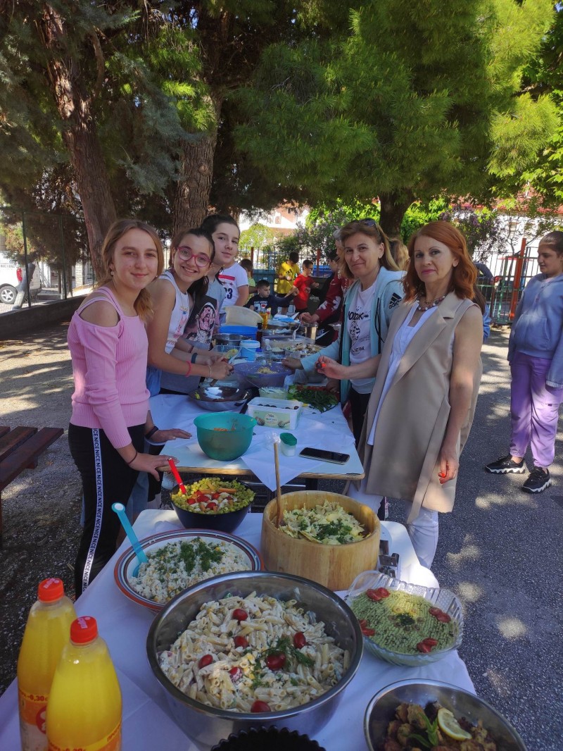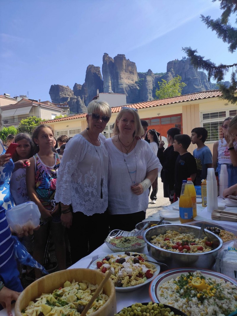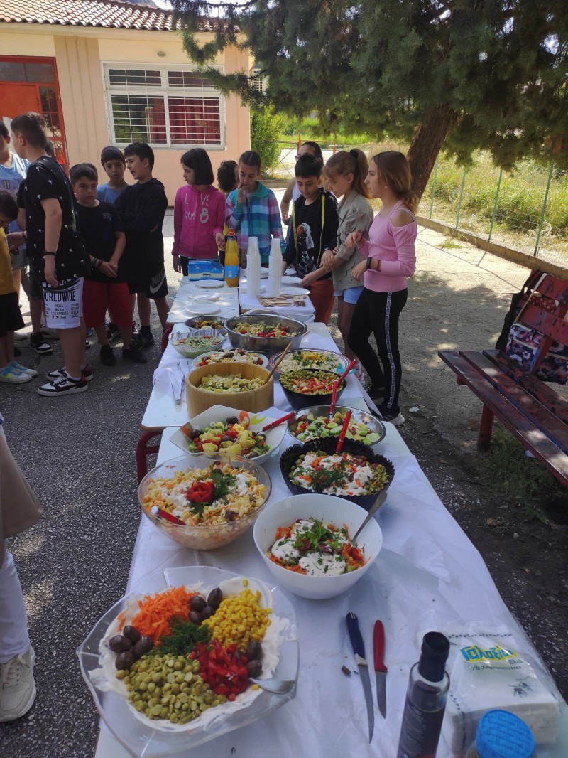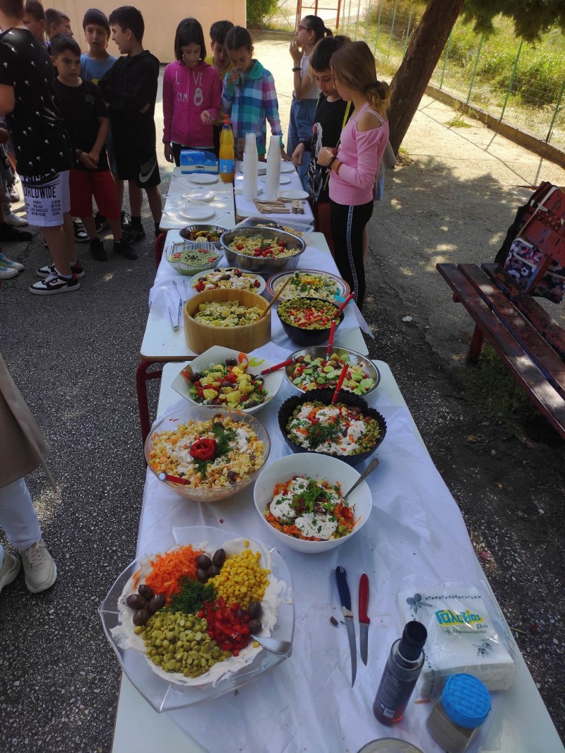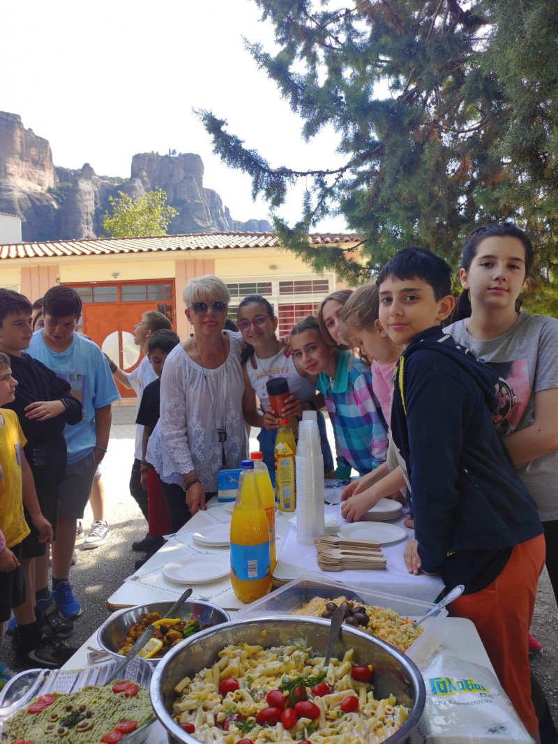Μια υπαίθρια κουζίνα με θέα τους επιβλητικούς βράχους των Μετεώρων στήθηκε στον αύλειο χώρο του σχολείου μας. Το καλοκαιράκι ήδη ξεπρόβαλε και μαζί μ’ αυτό υπέροχες, πολύχρωμες σαλάτες λαχανικών που ετοιμάστηκαν από εκπαιδευτικούς και μαθητές μας χάρισαν μία νότα δροσιάς και ικανοποίησης για το δικό μας ξεχωριστό γευστικό δημιούργημα.
