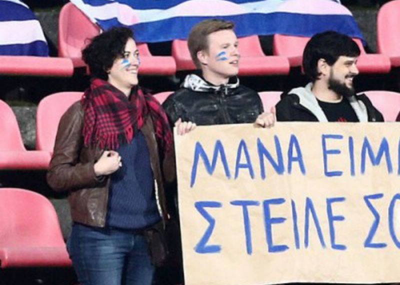 Ένα καταπληκτικό πανό αναρτήθηκε στην ελληνική κερκίδα στην αναμέτρηση της Φινλανδίας με την Ελλάδα στο Τάμπερε.