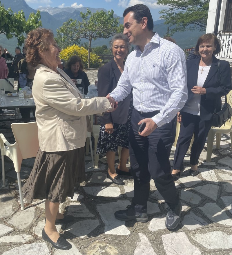 Παράλληλα, συζήτησε με τους κατοίκους, κτηνοτρόφοι και γεωργοί στην πλειονότητά τους, τα προβλήματα του πρωτογενούς τομέα: «Η περαιτέρω ανάπτυξη και στήριξη της ελληνικής περιφέρειας αποτελεί προτεραιότητα για τον Κυριάκο Μητσοτάκη. Στόχος μας είναι τα χωριά μας να μην ερημώσουν αλλά, αντίθετα, να αποκτήσουν ξανά ζωή, με νέες θέσεις εργασίας για τους νέους. Γιατί η καρδιά της Ελλάδας χτυπάει στην ελληνική περιφέρεια».