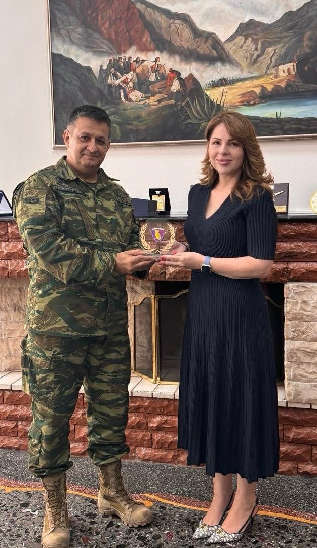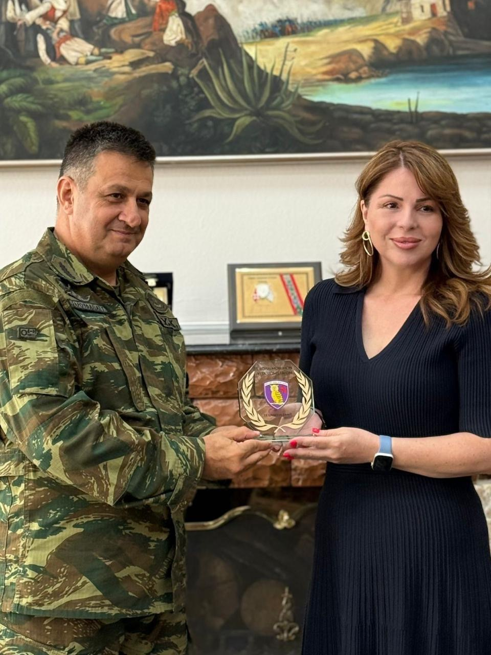 Κατά τη διάρκεια της συνάντησης, ο Διοικητής της Σχολής προσέφερε στην κ. Παπακώστα αναμνηστική πλακέτα «Σε Ένδειξη Τιμής», ως ένδειξη εκτίμησης και αναγνώρισης της στήριξής της προς τη ΣΜΥ.