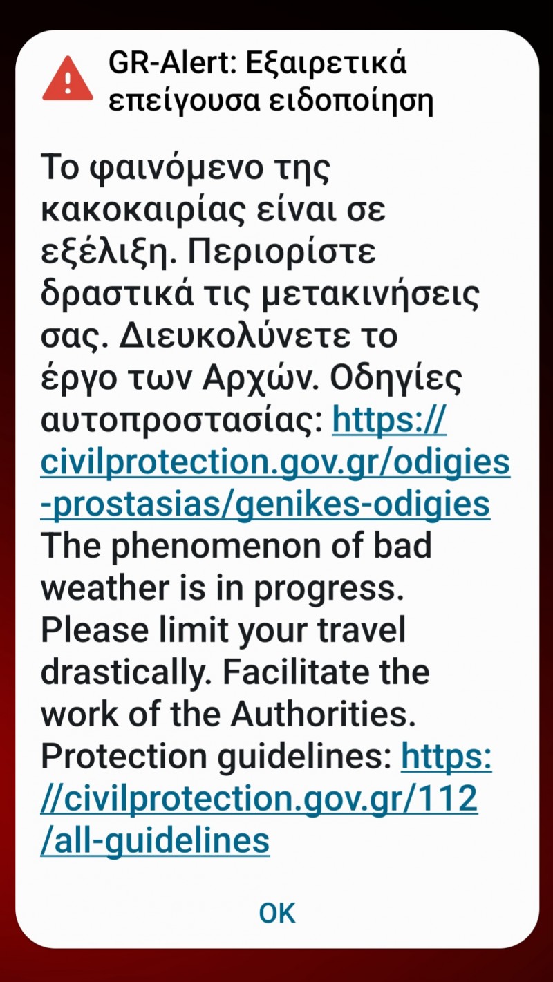 GR-Alert: Εξαιρετικά επείγουσα ειδοποίηση