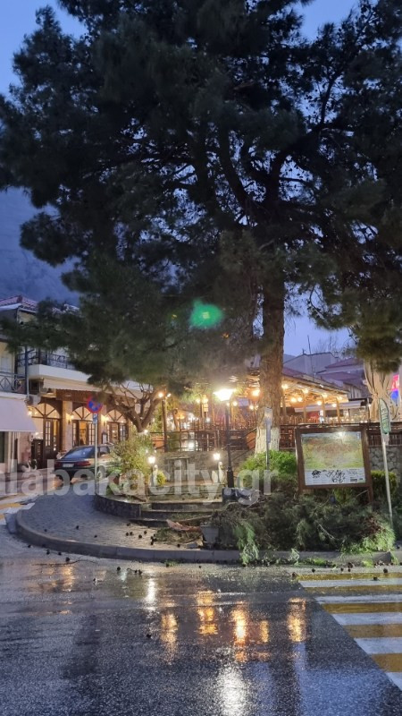 Καλαμπάκα: Έσπασε κλαδί από το πεύκο στην πλατεία Δημαρχείου