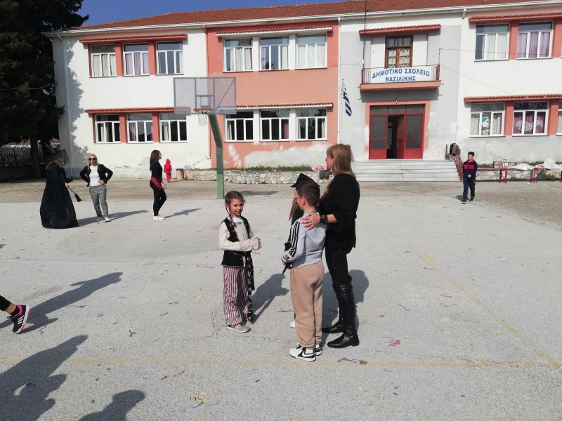 Ο Σύλλογος Γονέων και Κηδεμόνων του Δημοτικού Σχολείου Βασιλικής κέρασε διαφορά εδέσματα στα παιδιά και στους δασκάλους και όλοι μαζί διασκέδασαν σε αποκριάτικους ρυθμούς