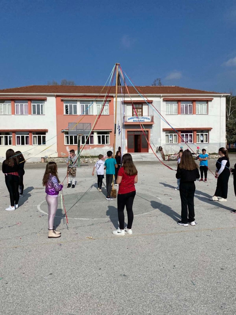 Με χορό, παιχνίδι και το παραδοσιακό γαϊτανάκι κύλησε η Παρασκευή για τους μικρούς μαθητές και εκπαιδευτικούς του Δημοτικού Σχολείου Βασιλικής.