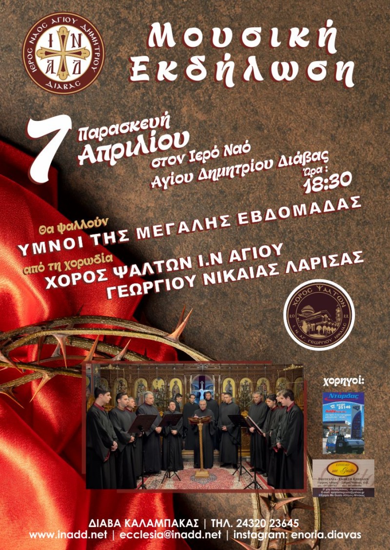 Μουσική εκδήλωση στον Ιερό Ναό Αγίου Δημητρίου Διάβας Ανακοινώσεις Από admin Δημοσίευση Απρ 3, 2023 -20:50 0 623 Κοινοποίηση FacebookTwitterΗλεκτρονικό ΤαχυδρομείοViber Μουσική εκδήλωση θα πραγματοποιηθεί την Παρασκευή 7 Απριλίου στις 18:30 στον Ιερό Ναό Αγίου Δημητρίου Διάβας. Θα ψαλλούν ύμνοι της Μεγάλης Εβδομάδας από την χορωδία Χορός Ψαλτών Ι.Ν. Αγίου Γεωργίου Νίκαιας Λάρισας. 0 623 Κοινοποίηση