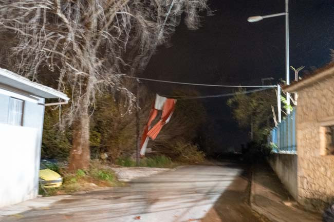 Λόγω μεγάλης έντασης του ανέμου στο Μουζάκι, σημειώθηκαν πτώσεις δέντρων σε διάφορα σημεία όπως και αποξηλώσεις σκεπών.