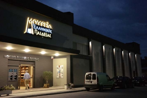 Στο χώρο της πρώτης μεγάλης αίθουσας του Μουσείου, ξετυλίγεται η αδιάκοπη πορεία της παιδείας με την πλούσια συλλογή χιλιάδων βιβλίων και εποπτικών μέσων διδασκαλίας που σπανίζουν, αλλά και άλλων εκθεμάτων που αφορούν τη μακραίωνη πορεία της ελληνοχριστιανικής παιδείας του νέου ελληνικού κράτους, για όλες τις βαθμίδες εκπαίδευσης· από το Νηπιαγωγείο μέχρι το Σχολαρχείο, το Γυμνάσιο και το Λύκειο, για σχολεία όχι μόνο του ελλαδικού χώρου, αλλά και εκτός αυτού όπως: Κων/πολη, Σμύρνη, Αλεξάνδρεια, Κύπρος, Αμερική και πρώην Σοσιαλιστικές χώρες της Ευρώπης. Ξεχωριστή θέση κατέχουν οι μαθητικές ενδυμασίες σε παλιότερες εποχές, όπως πηλίκια, τσάντες (δερμάτινες, υφαντές και κεντητές), ώστε να ξυπνούν μνήμες και να ζωντανεύουν εικόνες μιας άλλης εποχής.