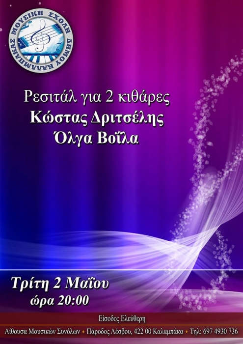Μουσική Σχολή Δ. Καλαμπάκας: Ρεσιτάλ για 2 κιθάρες με τον Κώστα Δριτσέλη και την Όλγα Βοΐλα