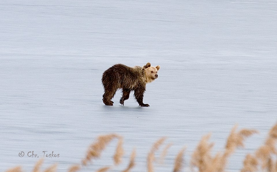 Νεαρή αρκούδα έκοβε βόλτες πάνω στην παγωμένη λίμνη της Καστοριάς