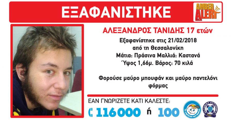 Υπενθυμίζεται ότι ο Αλέξανδρος Τανίδης, αγνοούνταν από τις 21 Φεβρουαρίου.