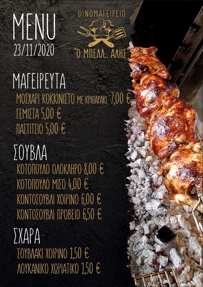 Με νεο πλούσιο μενού συνεχίζει να είναι κοντά σας το Οινομαγειρείο “Ο ΜΠΕΛΛ.. ΑΛΗΣ” της Καλαμπάκας που τόσο αγαπήσατε για την ποιότητα του.