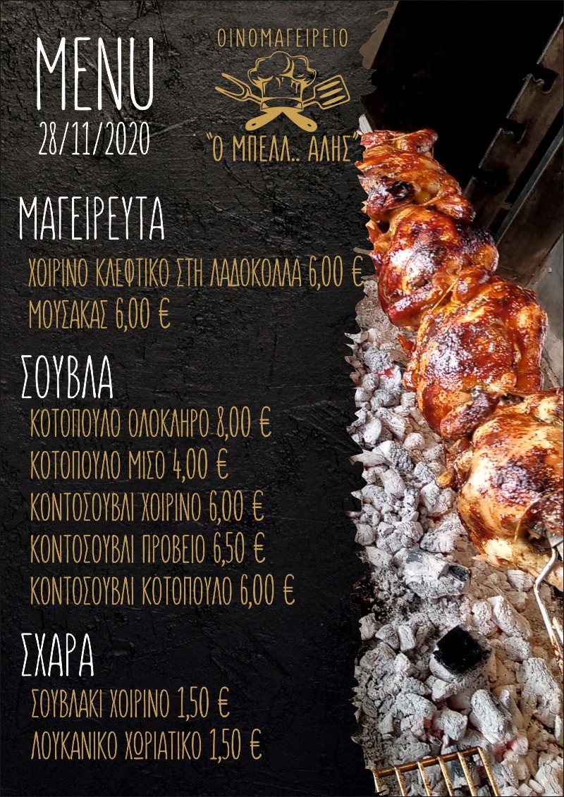 Με νεο πλούσιο μενού συνεχίζει να είναι κοντά σας το Οινομαγειρείο  “Ο ΜΠΕΛΛ.. ΑΛΗΣ” της Καλαμπάκας που τόσο αγαπήσατε για την ποιότητα του.