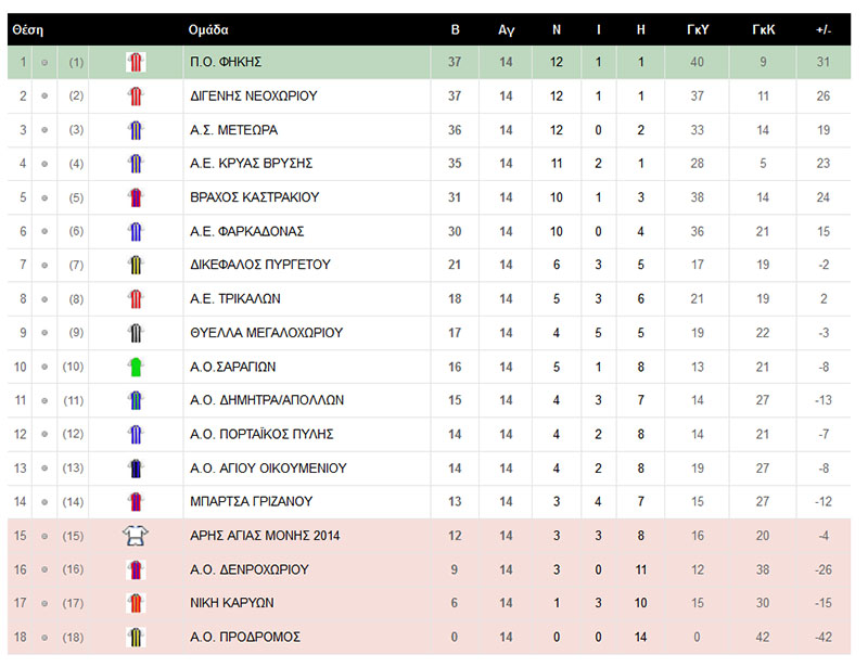Τα αποτελέσματα της 14ης αγωνιστικής: