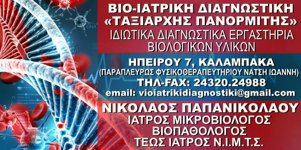 Ξεκίνησε τη λειτουργία του στην Καλαμπάκα ένα νέο Υπερσύγχρονο Μικροβιολογικό Ιατρείο του Ιατρού Μικροβιολόγου – Βιοπαθολόγου Νικόλαου Παπανικολάου, με καταγωγή από τη Διάβα Καλαμπάκας.