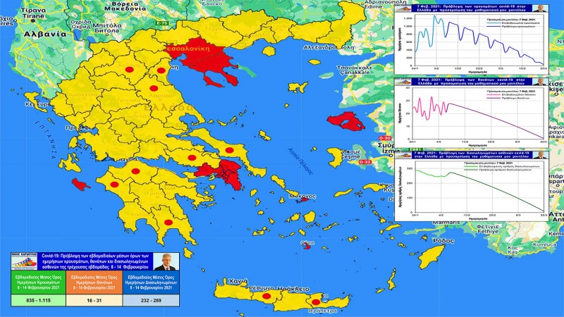 Ενσωματώνοντας στο μαθηματικό μοντέλο τα επιδημιολογικά δεδομένα της περασμένης εβδομάδας από 1 έως 7 Φεβρουαρίου και με σχετική προσομοίωση προέκυψαν τα παρακάτω τρία γραφήματα από τα οποία προκύπτει: