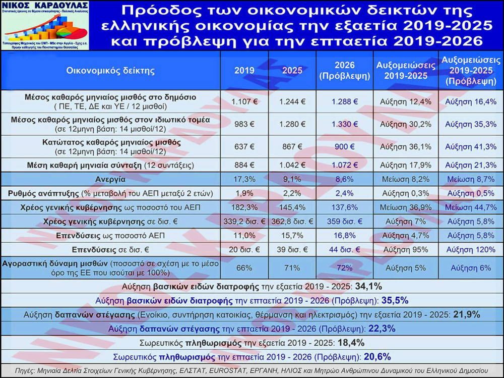 Νίκος Καρδούλας: Πρόοδος των δεικτών της ελληνικής οικονομίας την 6ετία 2019-2025 και πρόβλεψη για την 7ετία 2019-2026