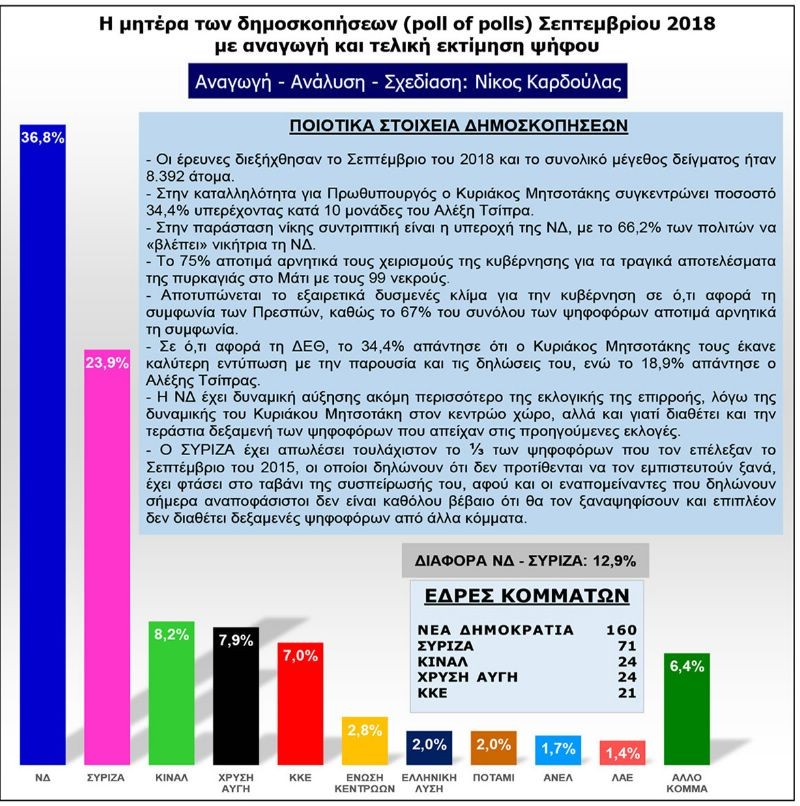 Νίκος Καρδούλας: Τι δείχνει ο μέσος όρος των δημοσκοπήσεων του Σεπτεμβρίου