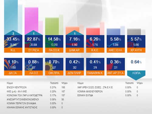 Κερδισμένη η Ν.Δ που παίρνει τρεις έδρες με τους Ηλία Βλαχογιάννη, Κώστα Σκρέκα και Μιχάλη Ταμήλο. Επίσης μια έδρα παίρνει ο ΣΥΡΙΖΑ με την Παναγιώτα Δριτσέλη και η ΔΗΜΑΡ με τον Γιώργο Κυρίτση.