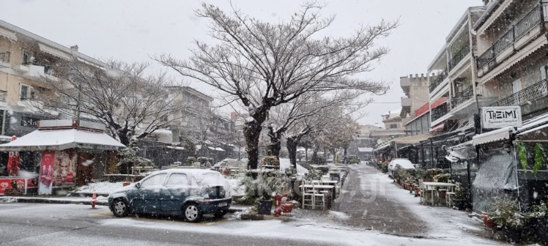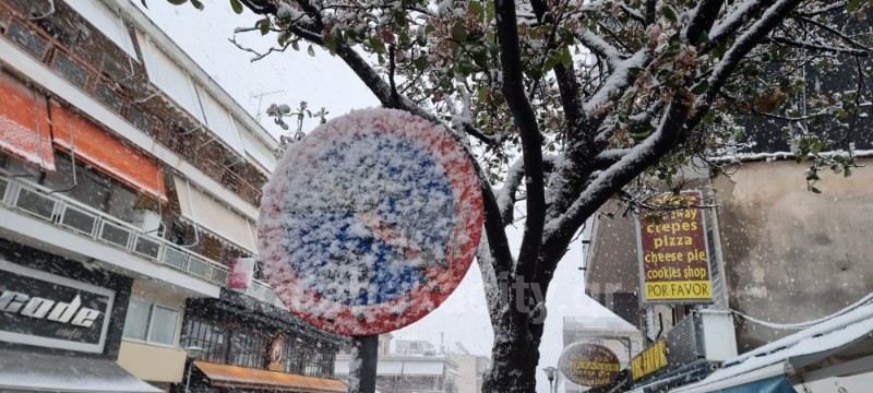 Το χιονι σε καποια σημεία της πολης δυσκολεύει την μετακινηση των πολιτών με τα οχήματα τους και η χιονόπτωση ειναι εντονη.