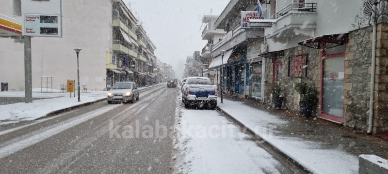 Ντυμένη στα λευκά ξύπνησε το πρωί της Τετάρτης η Καλαμπάκα από την χιονόπτωση που ξεκίνησε το βράδυ της Τρίτης.