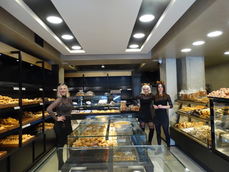 Οι πωλήτριες ντυμένες… γατούλες υποδέχονται τον κόσμο με χαμόγελο προσφέροντας τα προϊόντα του καταστήματος. Φυσικά οι λαγάνες δεν θα μπορούσαν παρά να βρίσκονται σε πρώτο πλάνο, αφού θα αποτελέσουν το κυρίαρχο προϊόν στο σαρακοστιανό τραπέζι…