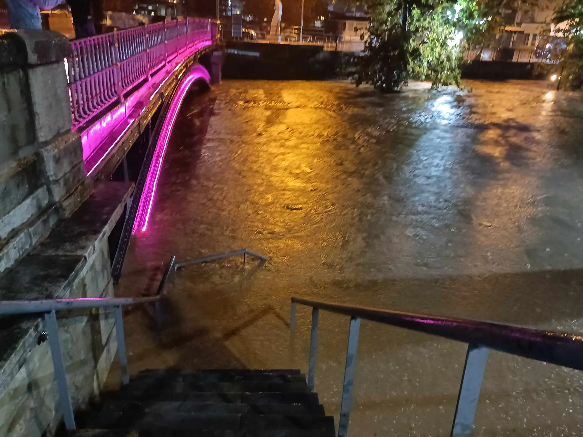 Στα κόκκινα είναι ο Ληθαίος ποταμός ενώ ήδη σε αρκετά σημεία όπως η γέφυρα Αρριανού και η οδός Σατωβριάνδου το ποτάμι έχει καλύψει τα πάντα. Αντίστοιχα και ο Αγιαμονιώτης έχει υπερχειλίσει σε αρκετά σημεία με το Φλαμούλι αυτή τη στιγμή να εμφανίζει να τη μεγαλύτερη επικινδυνότητα.