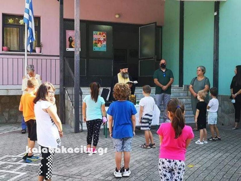 Από νωρίς, οι μικροί μαθητές κατέφθασαν πλημμυρισμένοι από αισθήματα χαράς για την επιστροφή τους στο γνώριμο χώρο του σχολείου, μετά από μία μεγάλη περίοδο απουσίας, εξαιτίας της πανδημίας, προκειμένου να αγιαστούν από τον ιερέα του χωριού.