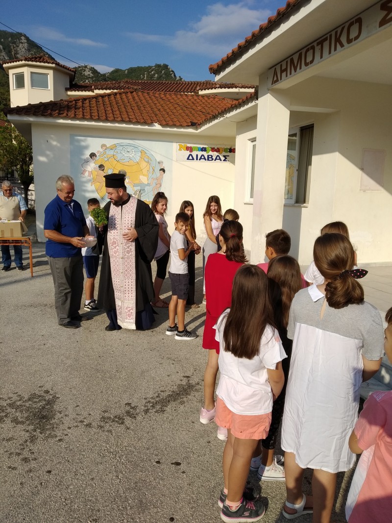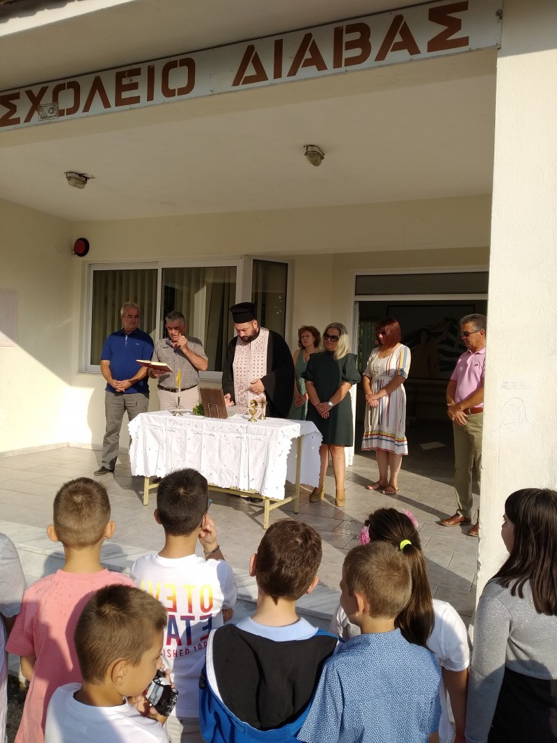 Σήμερα στις 9 το πρωί τελέστηκε ο αγιασμός στο Δημοτικό Σχολείο της Διάβας. Από νωρίς οι μαθητές μαζί με τους γονείς τους έφτασαν στο σχολείο προκειμένου να αγιαστούν από τον ιερέα του χωριού π. Ηρακλή Φίλιο.