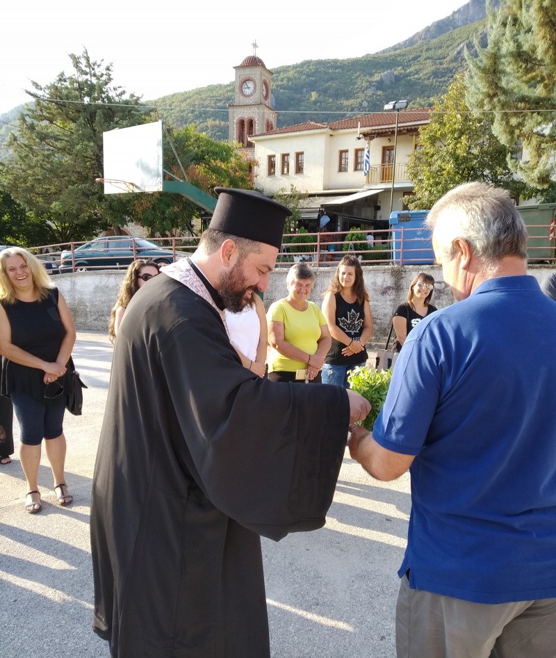 Μόλις τελείωσε ο αγιασμός, ο ιερέας του χωριού και αφού ευχήθηκε καλή κι ευλογημένη χρονιά στην κα. Διευθύντρια, στους δασκάλους και στους μαθητές, προέτρεψε τους μαθητές να ρίξουν το βάρος των σπουδών τους στην παιδεία περισσότερο, καθότι δεν έρχονται, όπως είπε, στο σχολείο μόνο για να μορφωθούν. Επίσης τους κάλεσε όποτε θέλουν να έρχονται στην Εκκλησία, η οποία βρίσκεται δίπλα στους ίδιους και στους δασκάλους για ό,τι χρειαστούν. Η κα. Διευθύντρια καλωσόρισε τους μαθητές, τους γονείς και τον Πρόεδρο του χωριού κ. Φώτη Αλέκο και ευχήθηκε να έχουν όλοι μία καλή σχολική χρονιά.