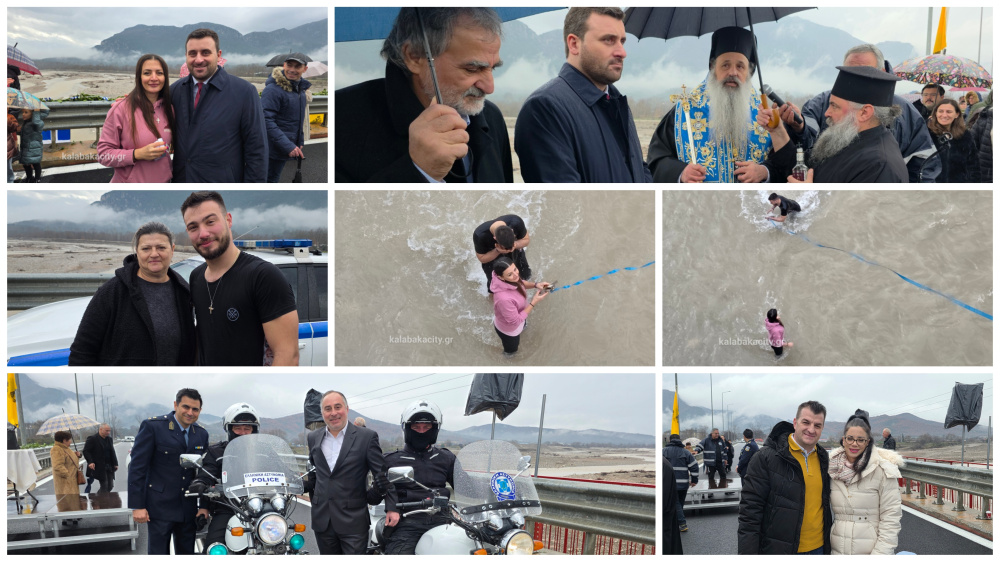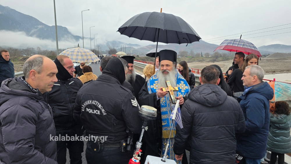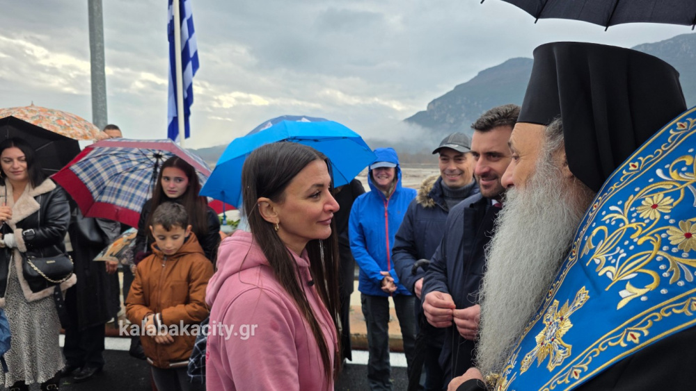 Κάτοικοι της πόλης και περιοχής κατέφθασαν από την Καλαμπάκα και την γύρω περιοχή, για να παρακολουθήσουν από κοντά τον αγιασμό των υδάτων και την ρίψη του Τιμίου Σταυρού που είχε να γίνει 2 χρονια λόγω της ζημιάς στην γέφυρα.