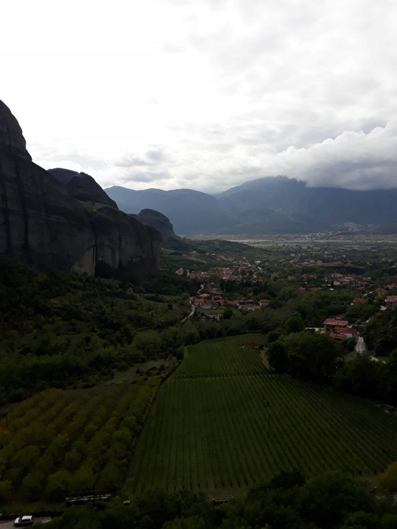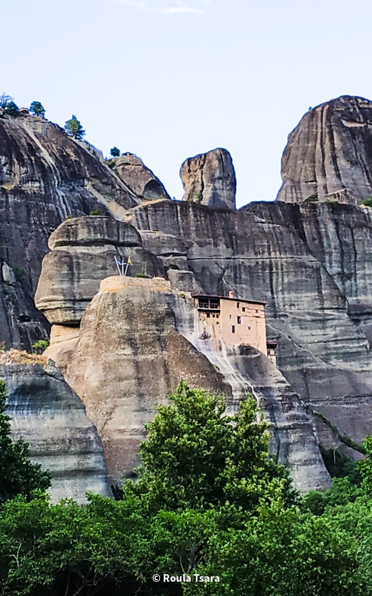 Ακούγονταν πουλιά να κελαηδάνε από εκεί, ο αέρας μύριζε νοτισμένο χώμα, η κίνηση λιγοστή (ήταν καθημερινή, το Σαββατοκύριακο η κίνηση είναι πολύ μεγάλη), τα αυτοκίνητα στο πάρκινγκ του μοναστηριού λιγοστά. Ούτως ή άλλως, οι περισσότεροι επισκέπτες των Μετεώρων προτιμούν να ανηφορίζουν για τα άλλα μοναστήρια. Γαλήνη.