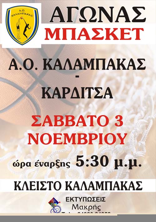 Στο κλειστό Βλαχάβειο Γυμναστήριο Καλαμπάκας αγωνίζεται αύριο η ομάδα μπάσκετ της πόλης μας στην δεύτερη αγωνιστική του πρωταθλήματος της Α1 ΕΣΚΑΘ.