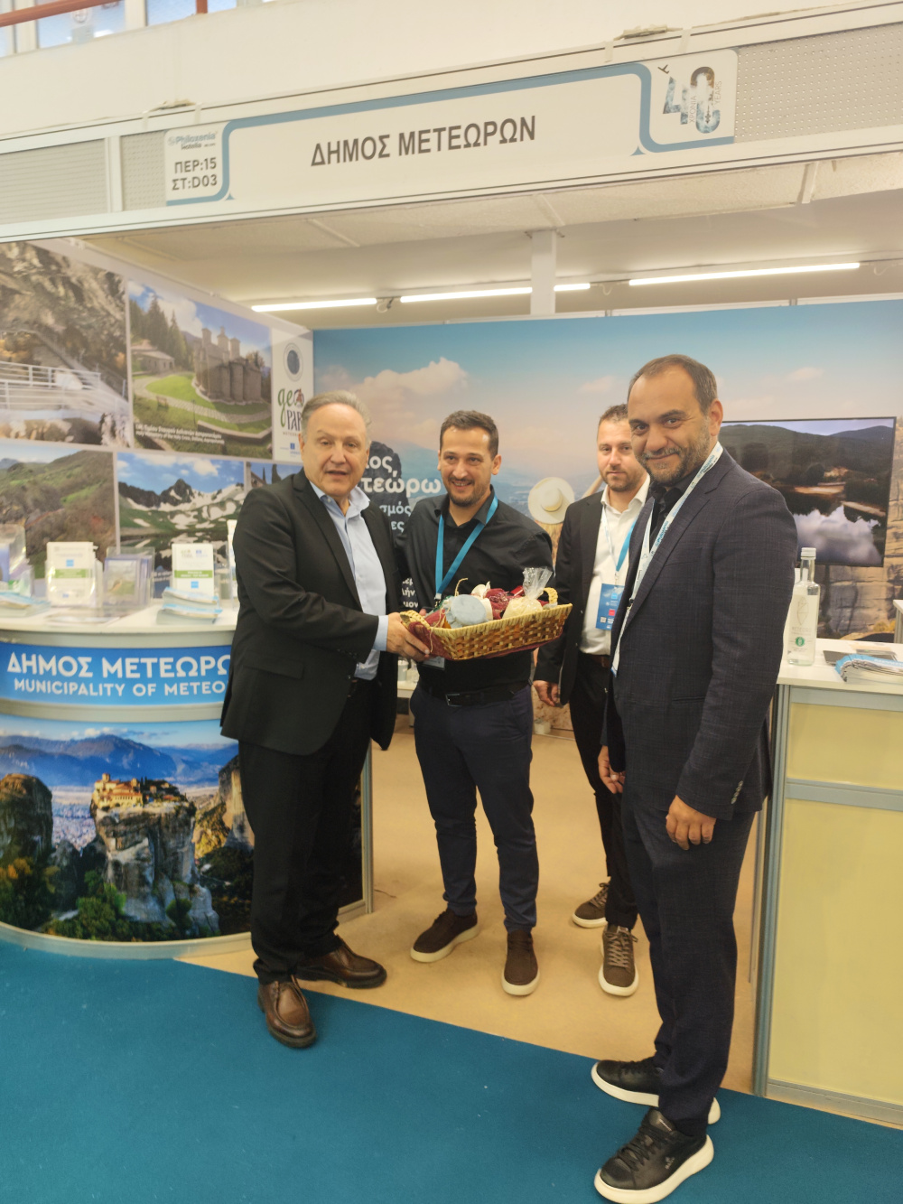 Την αποστολή του Δήμου Μετεώρων ηγήθηκε ο Δήμαρχος Λευτέρης Αβραμόπουλος, συνοδευόμενος από τον Αντιδήμαρχο Τουρισμού Φώτη Καραθανάση, τον Αντιδήμαρχο Αθλητισμού – Παιδείας Κώστα Παπάντο και τους Δημοτικούς Συμβούλους Σπύρο Θέμελη και Αθανάσιο Καψάλη, ενώ το περίπτερο στελέχωσαν ο Ειδικός Σύμβουλος Τουρισμού Χρήστος Ζώρος και η Ειδική Συνεργάτης του Δημάρχου Κωνσταντίνα Γεωργίου. Την παρουσία του Δήμου τίμησαν με την επίσκεψή τους η Υπουργός Τουρισμού Όλγα Κεφαλογιάννη, ο Υφυπουργός Μακεδονίας και Θράκης Κωνσταντίνος Γκιουλέκας, ο Γενικός Γραμματέας του ΕΟΤ Ανδρέας Φιορεντίνος, ο Πρόεδρος της ΔΕΘ Τάσος Τζήκας, ο Περιφερειάρχης Ηπείρου Αλέκος Καχριμάνης, η Αντιπεριφερειάρχης Π.Ε. Τρικάλων Χρυσά Ντιντή, η Αντιπεριφερειάρχης Τουρισμού Περιφέρειας Θεσσαλίας Αναστασία Αδαμοπούλου, ο Πρόεδρος του Επιμελητηρίου Τρικάλων Κωνσταντίνος Παπαευθυμίου, ο Δήμαρχος Θεσσαλονίκης Στέλιος Αγγελουδής, ο Δήμαρχος Τεμπών Γιώργος Μανώλης, ο Δήμαρχος Φαρσάλων Μάκης Εσκίογλου, ο Πρέσβης των Φιλιππίνων Giovvani Palec, ο Αντιδήμαρχος Τουρισμού Δήμου Θεσσαλονίκης Βασίλης Γάκης, ο Πρόεδρος της Αναπτυξιακής Εταιρίας του Επιμελητηρίου Τρικάλων Βασίλης Γιαγιάκος και ο Πρόεδρος της FEDHATTA Λύσανδρος Τσιλίδης.