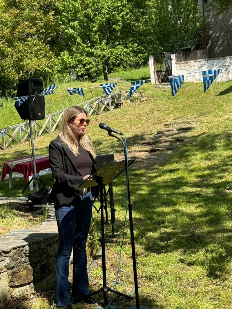 Ακολούθησαν σύντομοι χαιρετισμοί του Δημάρχου Μετεώρων Λευτέρη Αβραμόπουλου και των επισήμων καθώς και η κεντρική ομιλία της Διευθύντριας του Δημοτικού Σχολείου Παναγίας Γεωργίας Ζήκα. Στη συνέχεια πραγματοποιήθηκε η απαγγελία ποιημάτων από μαθητές του Νηπιαγωγείου και του Δημοτικού Σχολείου Παναγίας.