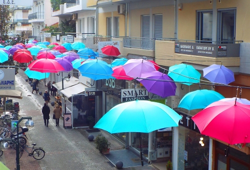 Οι ομπρέλες δίνουν τον τόνο: χρώματα χαρά και ελπίδα, χαμόγελα και αισιοδοξία.