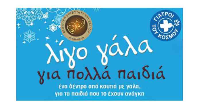 Το Θεατρικό Εργαστήρι Επί Σταγών σε συνεργασία με τους Γιατρούς του Κόσμου διοργάνωσε φιλανθρωπική δράση φτιάχνοντας το πιο όμορφο δέντρο από κουτιά με γάλα εβαπορέ, για τα παιδιά που το έχουν ανάγκη.