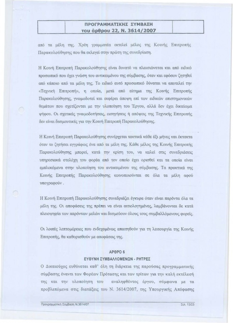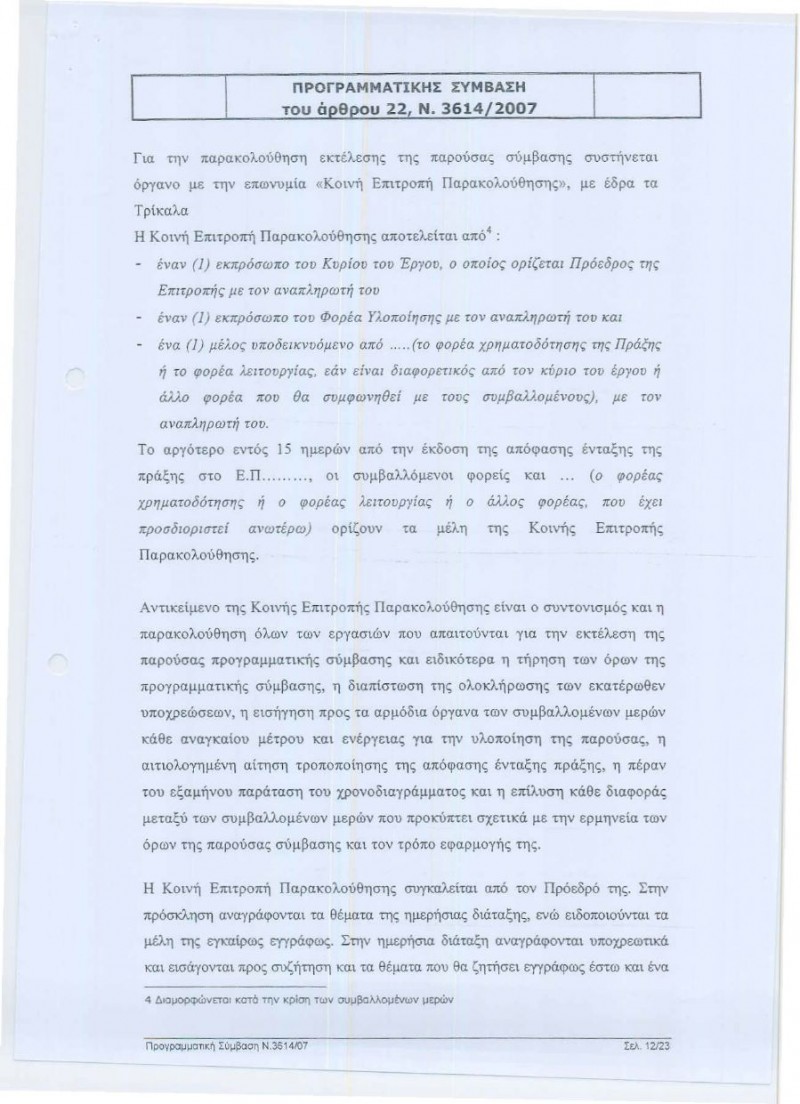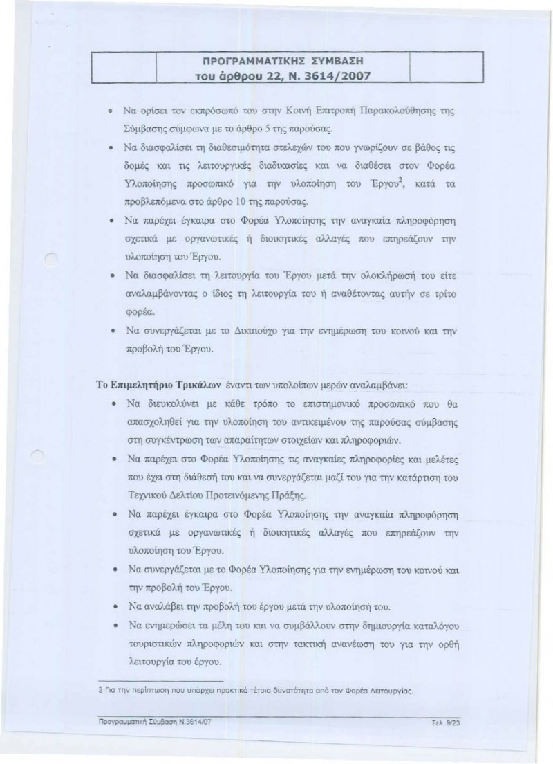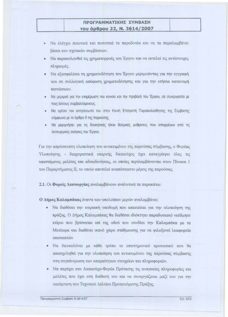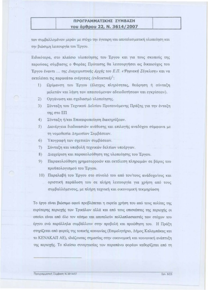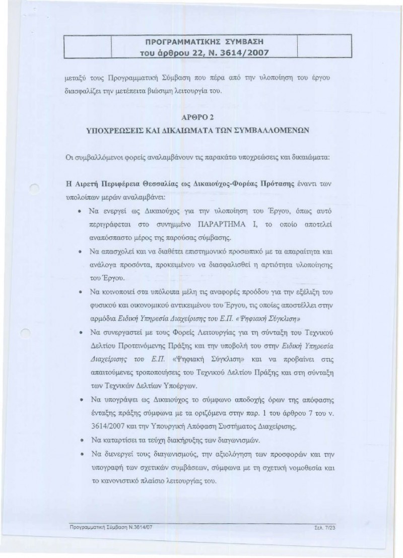 ενώ στην  Περιφέρεια Θεσσαλίας ως Φορέας Πρότασης δεν υπάρχουν περαιτέρω υποχρεώσεις μετά την παραλαβή του έργου .