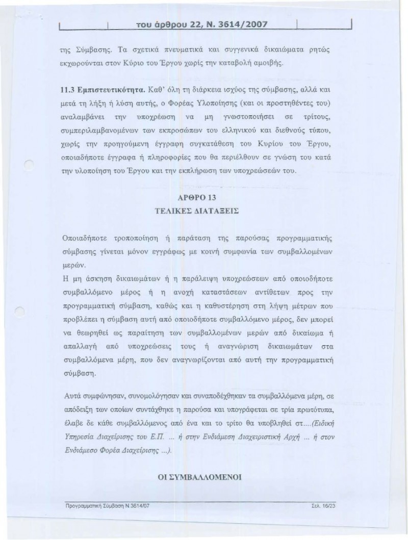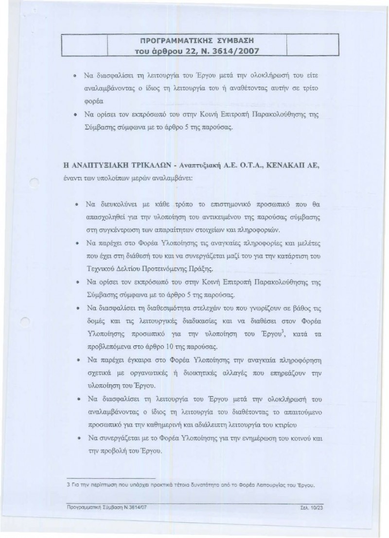 ΄΄ να διασφαλίσει τη λειτουργία του έργου μετά την ολοκλήρωση του είτε αναλαμβάνοντας ο ίδιος τη λειτουργία του ή αναθέτοντας αυτήν σε τρίτο φορέα ΄΄