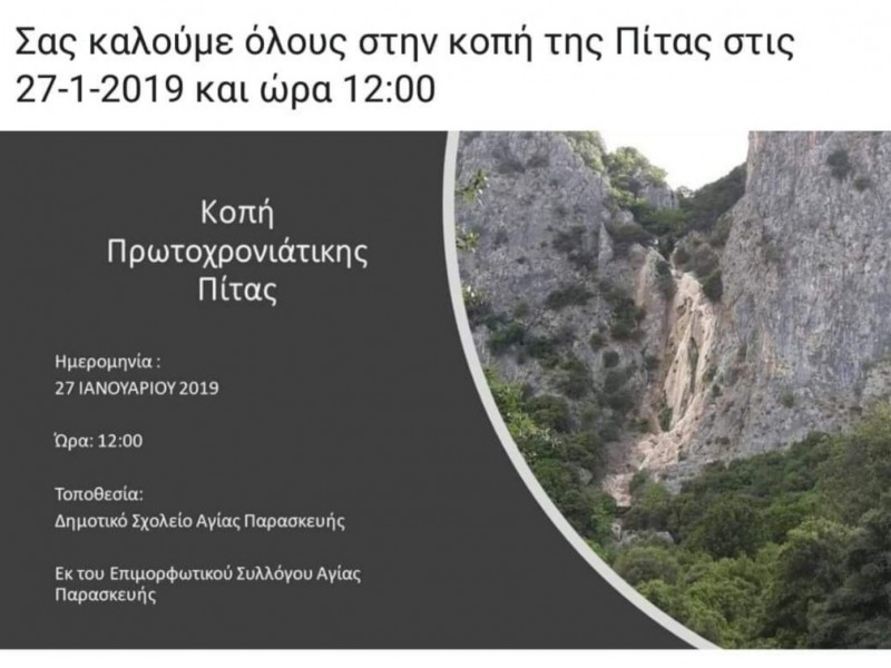 Ο Επιμορφωτικός Σύλλογος Αγίας Παρασκευής Καλαμπάκας κόβει την Πρωτοχρονιάτικη πίτα Ανακοινώσεις Από admin Δημοσίευση Ιαν 23, 2019 -22:39 0 609 Κοινοποίηση FacebookTwitterΗλεκτρονικό ΤαχυδρομείοViber Ο Επιμορφωτικός Σύλλογος Αγίας Παρασκευής Καλαμπάκας σας καλεί την Κυριακή 27 Ιανουαρίου στις 12:00 μ.μ στην αίθουσα του Δημοτικού Σχολείου του χωριού για την κοπή της Πρωτοχρονιάτικης πίτας. 0 609 Κοινοποίηση