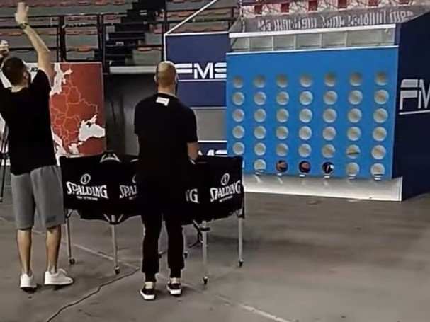 Ο Κώστας Φορτούνης επισκέφτηκε τον φίλο του Βασίλη Σπανούλη στο Στάδιο Ειρήνης και Φιλίας και την μπασκετική ομάδα της οποίας είναι φίλαθλος και του δόθηκε η ευκαιρία να παίξει ένα διαγωνισμό με τον αρχηγό των “ερυθρολεύκων”.