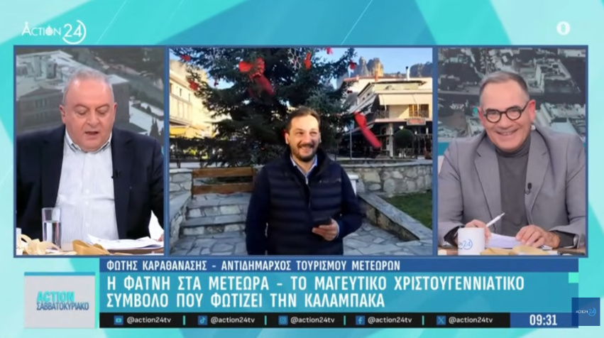 Ο Αντιδήμαρχος Τουρισμού του Δήμου Μετεώρων Φώτης Καραθανάσης μίλησε το πρωί στην εκπομπή «Action Σαββατοκύριακο» του Action 24, με τους δημοσιογράφους Δημήτρη Καμπουράκη και Βαγγέλη Γιακουμή, για τη φάτνη στους βράχους των Μετεώρων που έχει κεντρίσει το πανελλαδικό ενδιαφέρον.