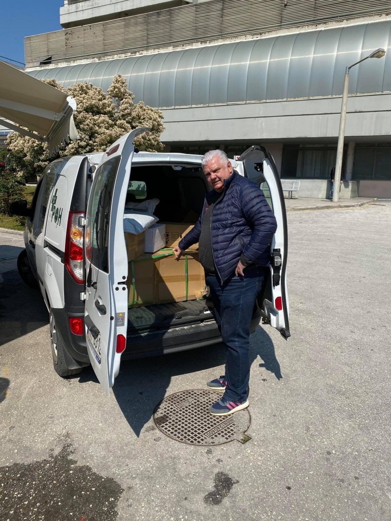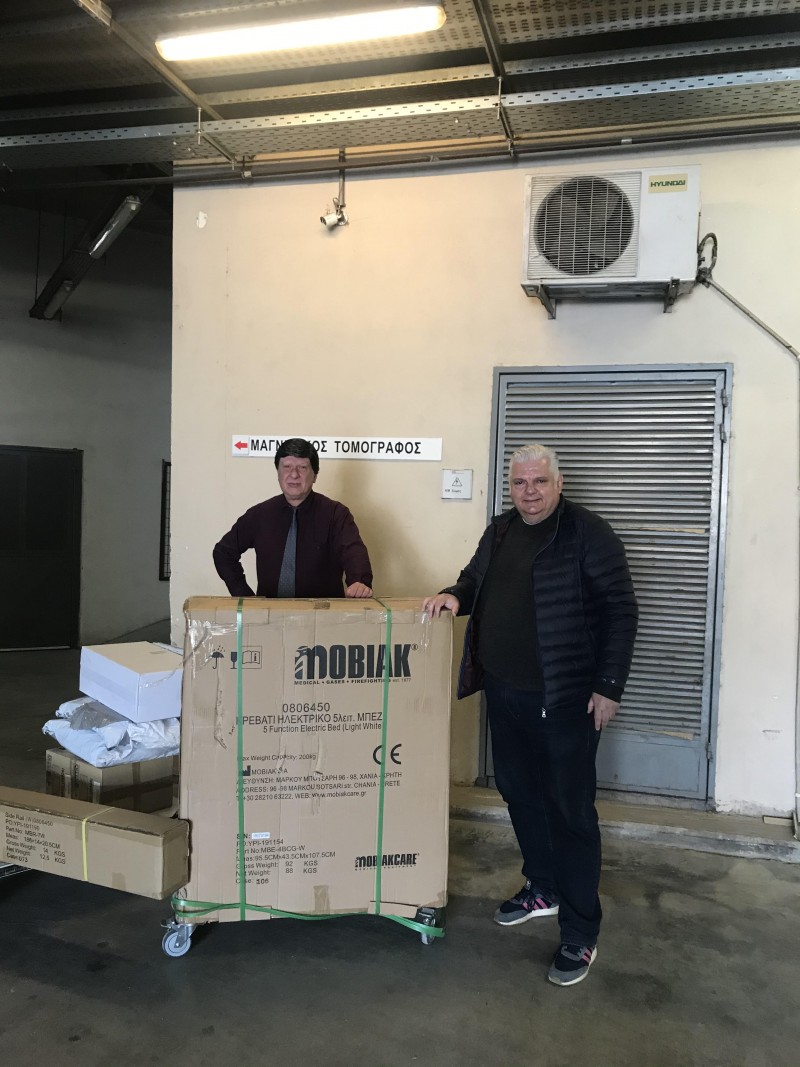 Συγκεκριμένα , παρέδωσε 1 σύγχρονο ηλεκτρικό νοσοκομειακό κρεβάτι , ολόσωμες στολές προστασίας , γυαλιά προστασίας και πακέτα των 100 τεμ. γάντια νιτριλίου .